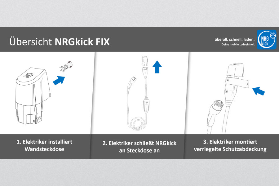 NRGkick Fix "Select", zum Festanschluss mit verriegelbarer Wandsteckdose 230 V AC, 16 A, Serie 9332